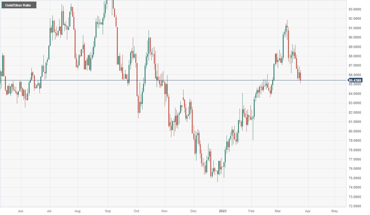 然而,白银在周五和本周内的表现都超过了黄金。该比率在3月初达到顶峰,此后呈下降趋势。它又回到了2月份的水平。