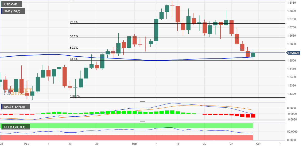 美元/加元在100日简单移动平均缐(SMA)下方显示出韧性,并在1.3500心理关口附近吸引了一些𧹒盘,或周五早些时候触及的五周半低点。该货币对在进入北美时段时保持其𧹒盘基调,目前位于1.3550区域附近,仅比日高低数点。
