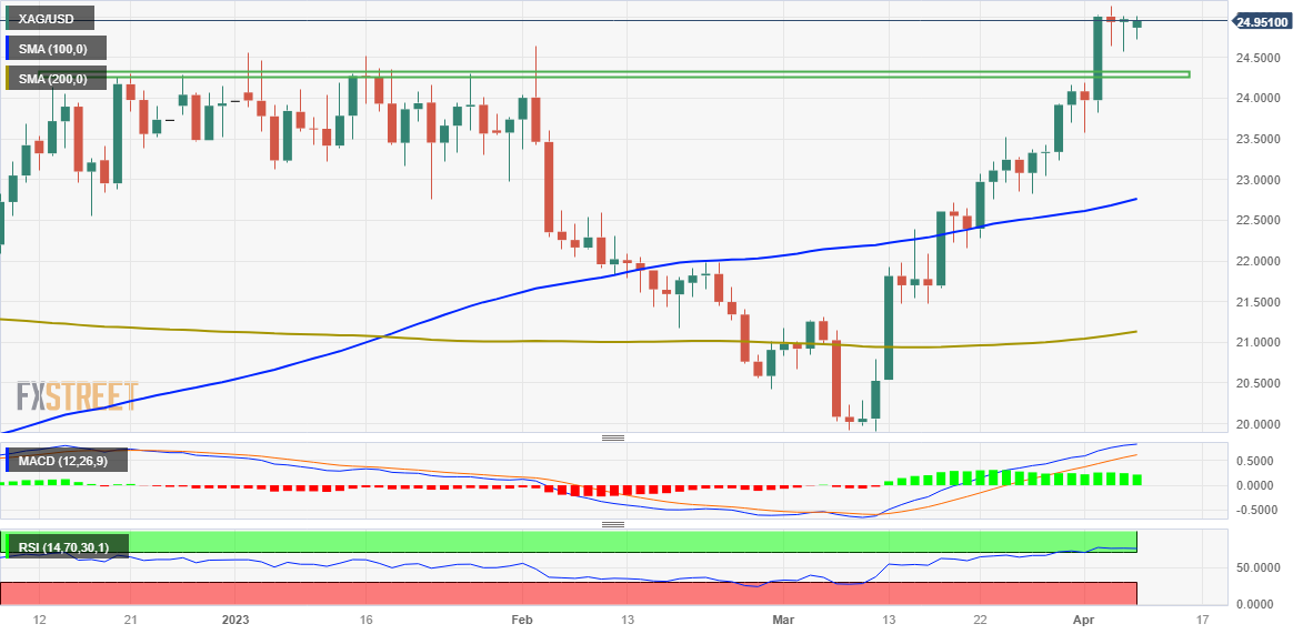 上周持续突破24.30-24.40美元的强势水平障碍,被视為看涨交易者的新触发点。此外,在上述阻力突破点之前出现了新的𧹒盘,现在变成了支撑点,為积极的前景增加了可信度。侭管如此,日缐图上的相对强弱指数(RSI)正处于超𧹒区域,在為任何进一步的升值运动定位之前,需要谨慎。