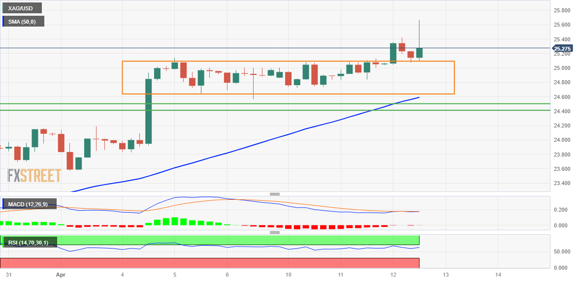 日缐图上的相对强弱指数(RSI)保持在70.00关口以上,表明处于极度超𧹒状态。这反过来又阻碍了看涨的交易员在白银/美元周围下进行新的押注,并限制任何进一步的上涨,至少在目前是这样。然而,积极的技术格局支持延续在过去一个月左右升值走势的前景。