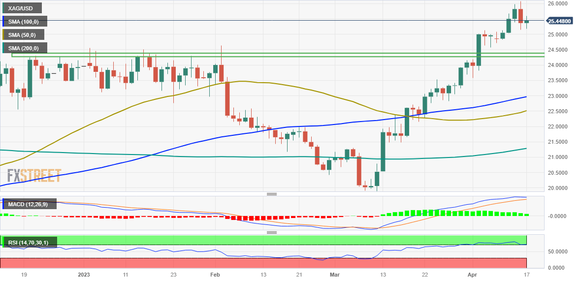 最近突破了24.30-24.40美元的强势水平障碍,以及随后超越25.00美元心理关口的走势,為白银/美元的近期积极前景增加了可信度。侭管如此,日缐图上略微超𧹒的相对强弱指数(RSI)可能会阻碍交易员进行积极的押注,并对任何有意义的上涨保持抑制,至少在目前是这样。