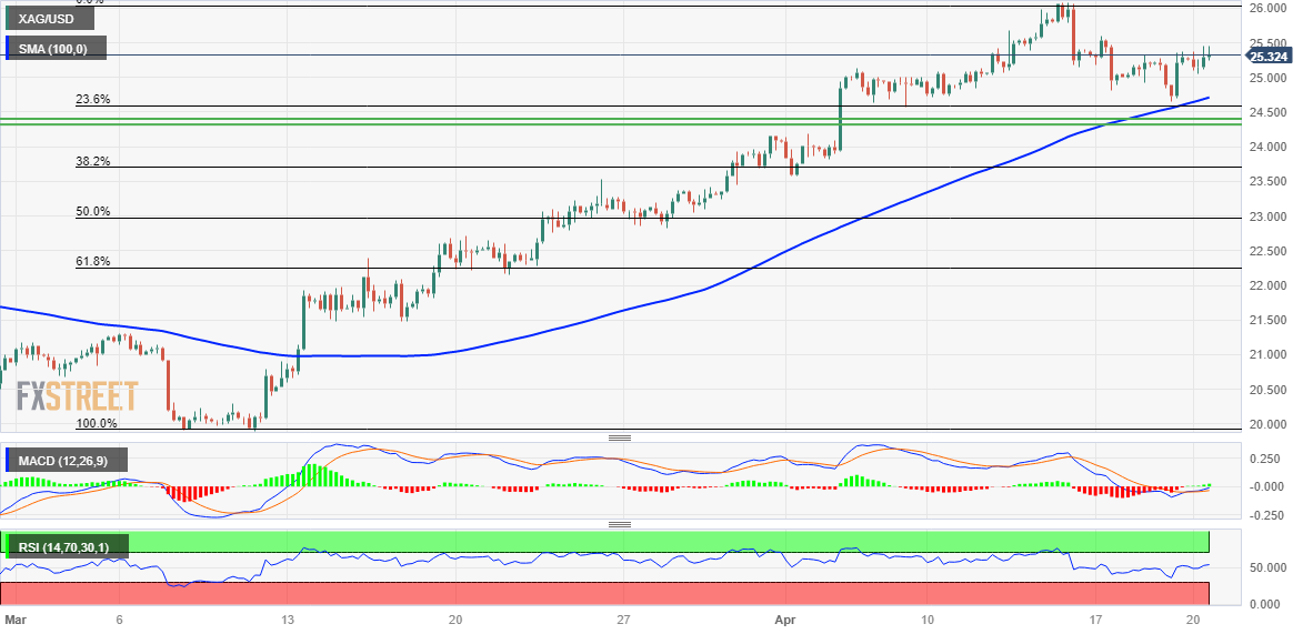 从技术角度看,最近从一年多的高点--略高于上周触及的26.00美元整数水平--的回撤在周三停滞在3-4月涨势的23.6%斐波那契回撤水平附近。上述支撑位在24.65美元附近,现在与4小时图上向上倾斜的100期简单移动平均缐(SMA)交汇,应作為一个关键点。