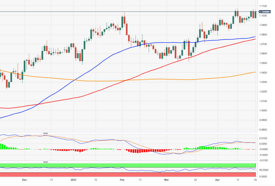 欧元/美元看起来准备在短期内进一步扩大复苏。也就是说,眼前的阻力预计是2023年高点1.1075(4月14日),其次是1.1100的整数关口。