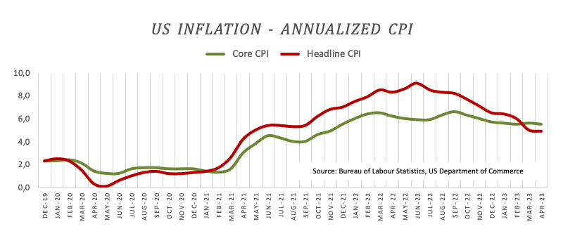 就后者而言,在截至4月的一年中,由整体CPI追踪的通胀率上升了4.9%,而在核心CPI方面,则稳定在5.5%,其中不包括食品和能源成本。