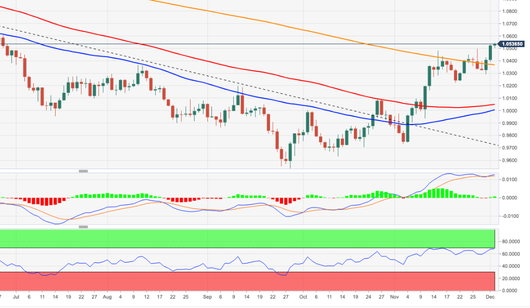 欧元兑美元进一步上涨至1.0550附近的6个月新高。