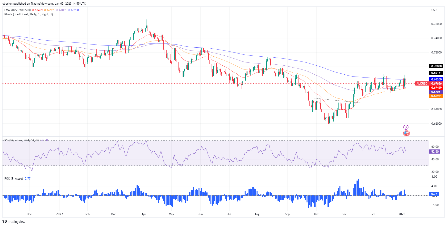 澳元/美元下跌,此前美国公布的部分经济数据证实了强劲的劳动力市场。因此,交易员猜测美联储(Fed)将继续收紧货币政策。在撰写本文时,澳元/美元的交易价為0.6767。