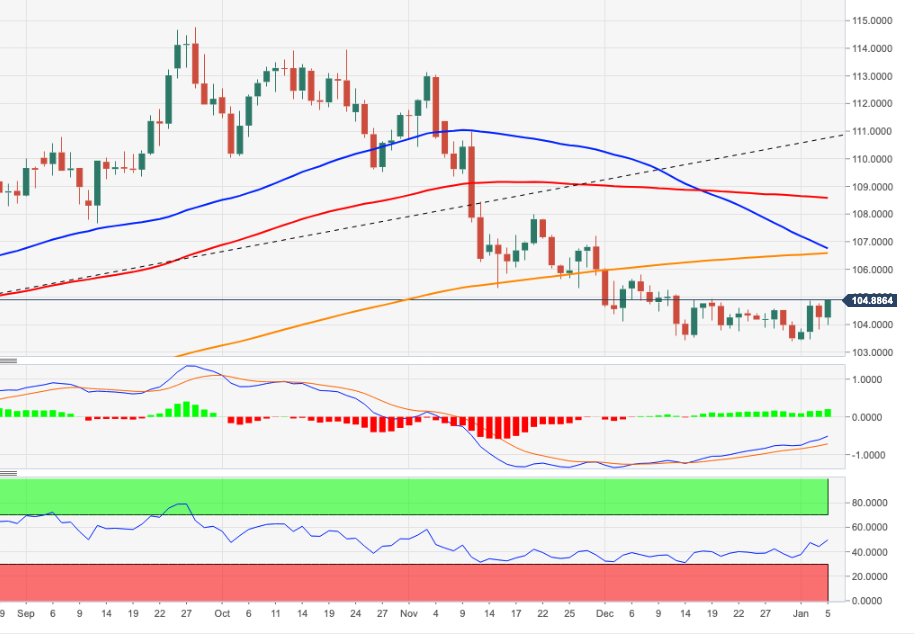 美元指数恢复上升趋势,并在周四测试105.00附近的关键阻力区域。