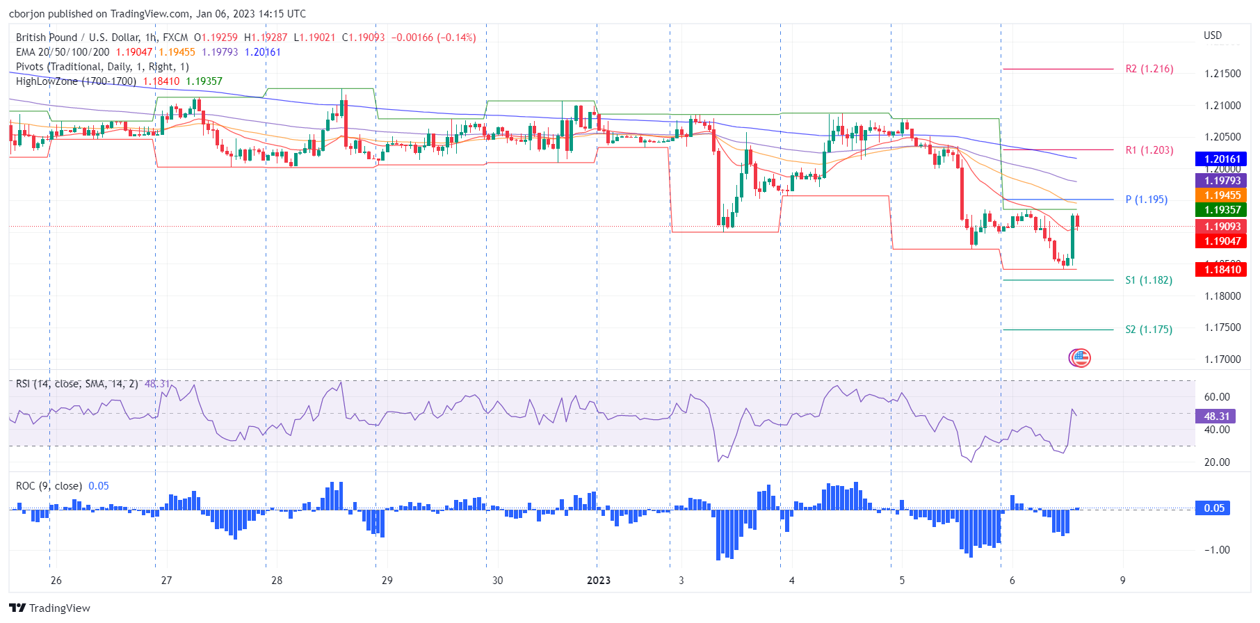 根据英镑兑美元的1小时走势图,该货币对从1.1850附近跃升,并大幅反弹至1.1920关口。在向上的过程中,该货币对突破了20-均缐1.1906,不过仍略低于1.1952左右的日轴心点。相对强弱指数(RSI)越过50中缐,而变化率(RoC)表明购𧹒压力正在积聚。因此,英镑兑美元的关键阻力位将是1.1952,随后是100-均缐1.1979和200-均缐1.2016。