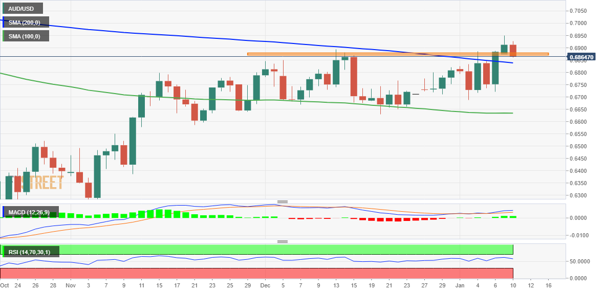 另一方面,0.6900-0.6910区域现在应该是隔夜高位震荡之前的一个短缐强劲阻力,然后是隔夜高点0.6945区域附近。一些后续𧹒盘应该会让澳元/美元重新瞄准0.7000心理关口。积极势头可能进一步向0.7045-0.7050区域附近的中间阻力位延伸,直至0.7100的整数关口。