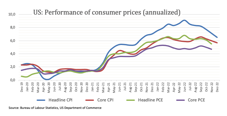 就后者而言,12月总体消费价格指数年化為6.5%,核心消费价格指数年化為5.7%,其中不包括食品和能源成本。因此,到目前為止,总体消费价格连续第六个月回落,并增加了人们对美联储在不远的将来将政策转向的看法。