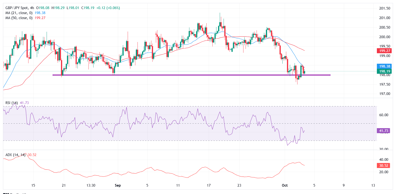 英镑/日元在周五企稳,结束了四天的下跌趋势,此前在周四跌至自8月7日以来的最低水平。撰写时,该货币对在198.00附近保持坚挺,从日内高点198.55回落。