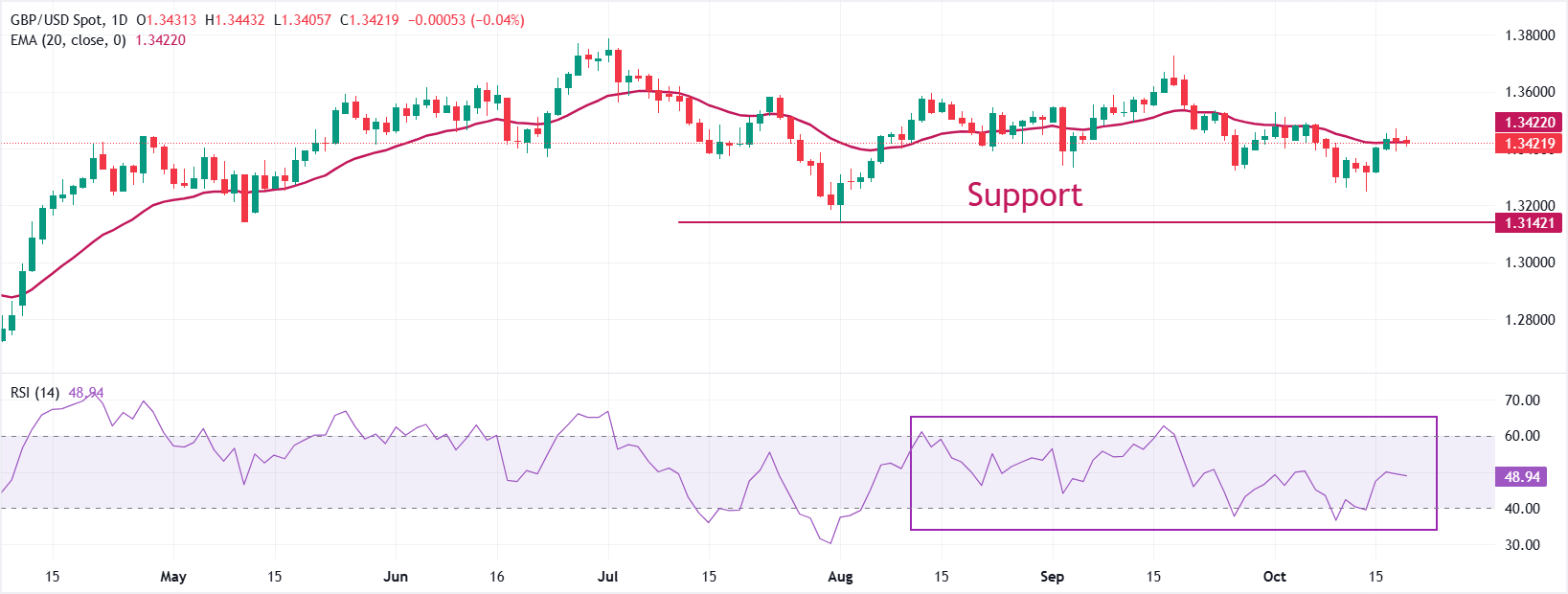 英镑(GBP)在本周初表现不佳,落后于大多数同行。由于投资者在等待英国(UK)9月份消费者物价指数(CPI)数据的发布而变得谨慎,英镑面临压力,该数据将于周三公布。