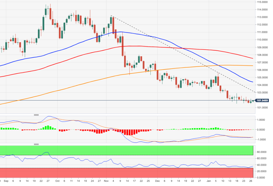 侭管出现反弹,但该指数仍然面临压力,持续跌破101.50水平应该会加速下行,最初是2022年5月的低点101.30附近(5月30日),然后是心理关口100.00。