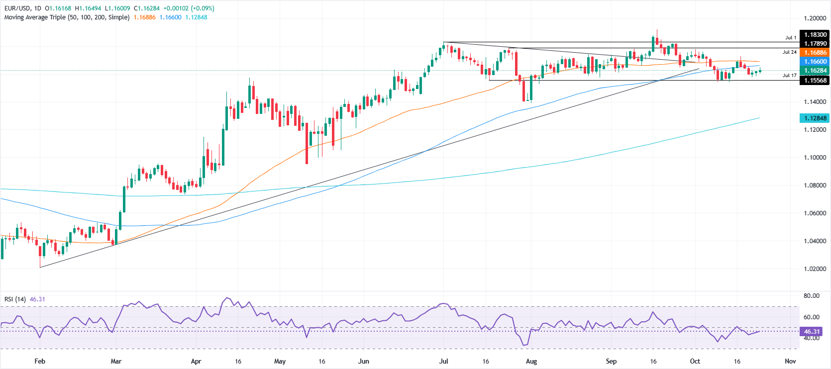 欧元/美元预计本周将损失0.21%,但连续第三天保持在1.16以上,因美国数据可能不会阻止美联储降息,限制了上行空间。