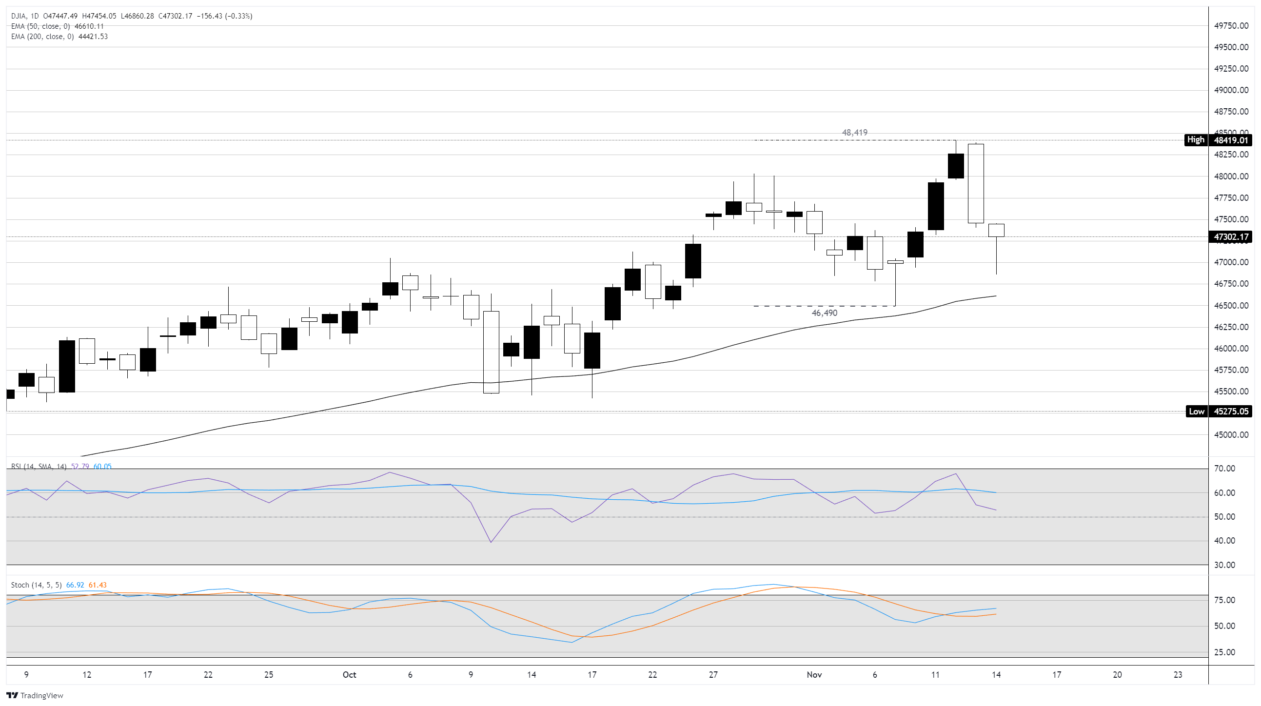 - 道琼斯指数周五难以抵挡看跌动能。