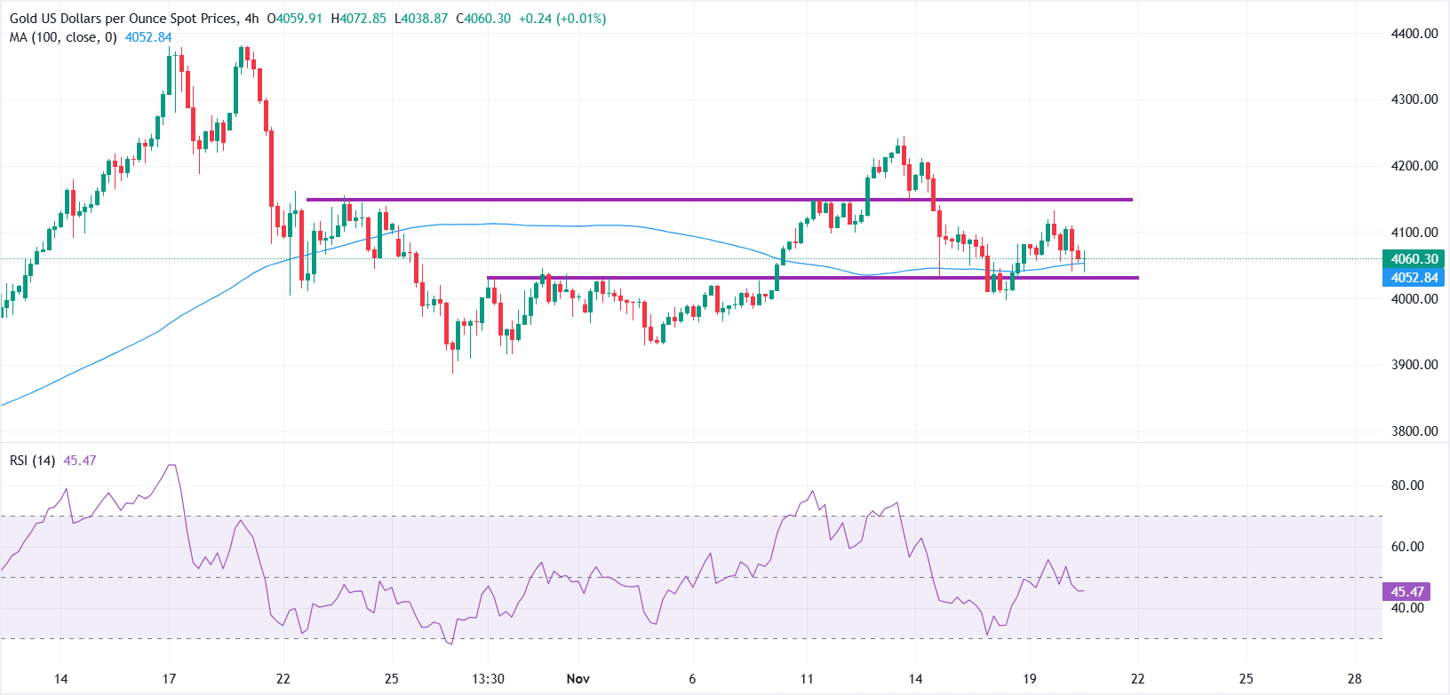 在4小时图上,XAU/USD在4050美元附近的关键汇聚支撑区上方盘整,100期简单移动平均缐(SMA)提供了即时技术支撑。只要价格保持在100 SMA之上,短期前景仍然乐观。然而,若清晰跌破该汇聚区,将削弱技术偏向,并打𫔭向4000美元的空间。