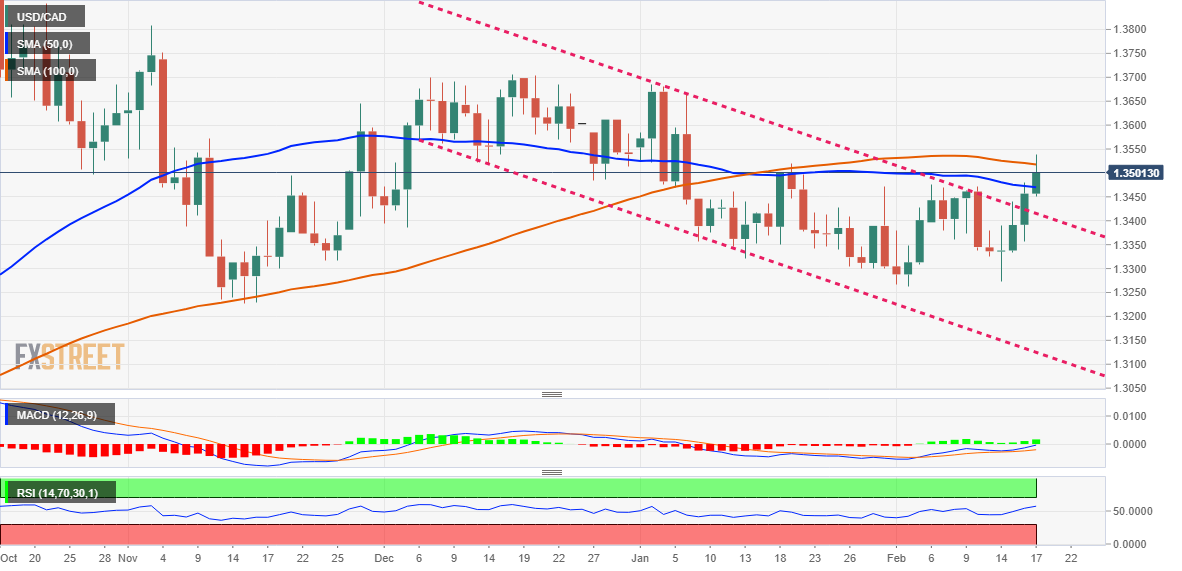 美元/加元延续在本周从月低点附近的良好反弹,并在周五获得强劲的后续动能。这一势头将现货价格推高至1.3535-1.3540区间,或1月6日以来的最高水平,并受到多种因素的推动。
