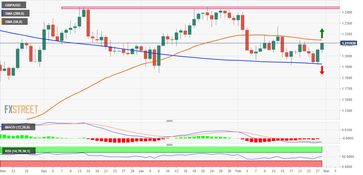 英镑/美元在周二早盘下滑至1.2025区域后获得了新的𧹒盘,并延续前一天从非常重要的200日简单移动平均缐(SMA)𫔭始的强劲反弹。在北美市场早盘期间,这一势头推动现货价格突破1.2100大关升至四天高点,并受到多种因素的推动。